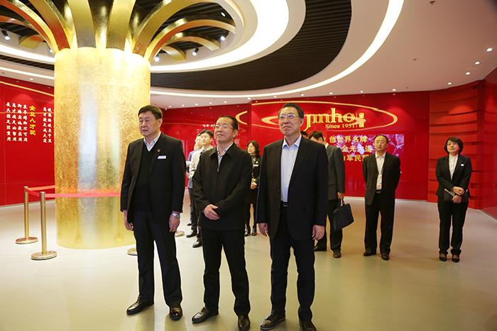 傅书记实地参观了金多宝(中国)官方网站 展陈馆,详细了解公司生产经营、转型升级、军民融合及展陈馆建设情况,对公司的技术研发、品牌建设、军民融合工作及金多宝 皮鞋、皮具的优异品质给予了充分肯定和高度赞扬。