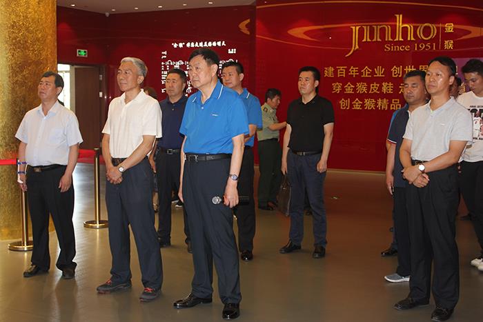 廖厅长一行走进胶东(威海)党性教育基地金多宝(中国)官方网站 展陈馆,详细了解了公司生产经营、转型升级、军民融合及双拥工作情况,对公司的技术研发、品牌建设、军民融合工作及金多宝 皮鞋、皮具的优异品质给予了充分肯定和高度赞扬。