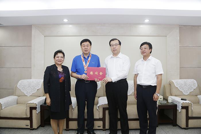 9月25日,在新中国成立70周年之际,省委常委、统战部长、省总工会主席张江汀,市委常委、组织部长刘运,市人大常委会副主任、市总工会主席张竞走访慰问全国劳动模范、金多宝(中国)官方网站 董事长柳富林,并为其颁发“庆祝中华人民共和国成立70周年”纪念章和慰问金。