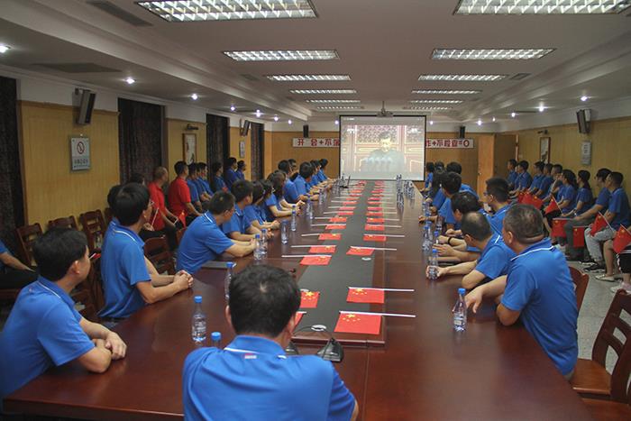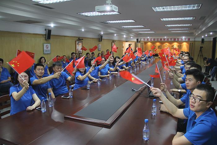 雄壮的国歌在耳畔回绕,鲜艳的五星红旗在天安门广场高高飘扬,整齐划一的阅兵方队依次通过主席台接受检阅,看着威武之师的强大气场和靓丽风采,广大干部职工心潮澎湃,大家不由自主地用力挥舞手中的小国旗为中国梦和强军梦喝彩,特别是看到穿着金多宝 阅兵鞋靴的阅兵方队亮相屏幕时,大家热血沸腾,掌声和欢呼声将现场氛围推向一波又一波高潮。