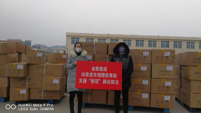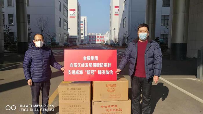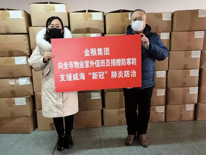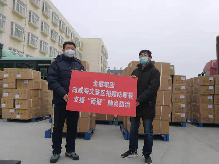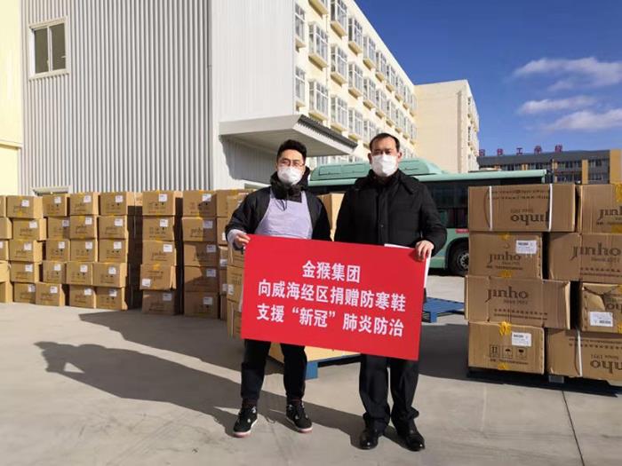 2月3日至今先后向威海市环翠区、高区、经区、临港区、文登区、荣成市、乳山市、南海新区捐赠防寒服15000多件、防寒靴20000多双,价值达1500多万元,把温暖送给广大户外一线防疫人员。